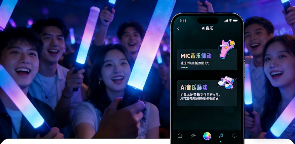高刷荧光棒系统,支持场控、区控、点控现场秒变“光海巨幕”,3 秒速连,1600 万色随心定制,全场同步,多场景适配。适合各类演出场景营造高级氛围感,酷炫场控,科技感拉满。