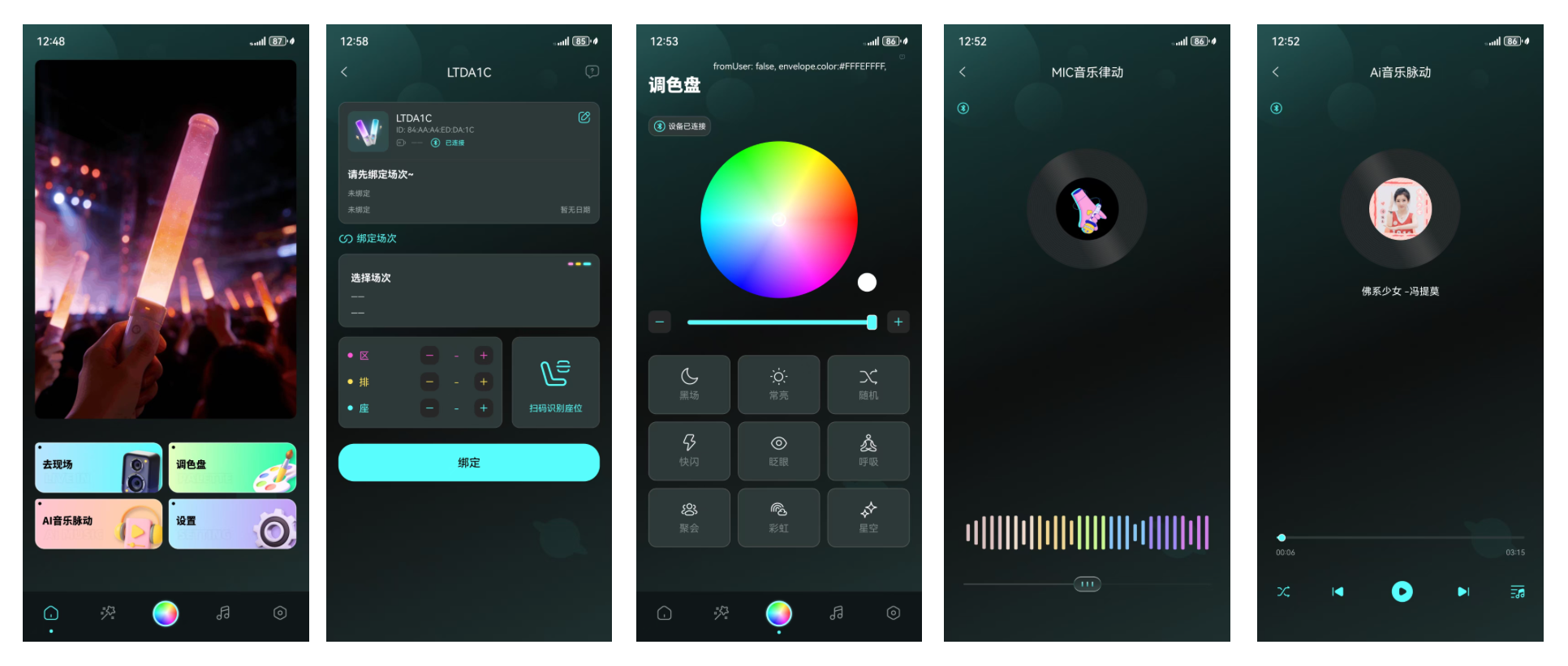 支持多种模式灯控,并支持现场拾音控制灯跟随音乐律动。