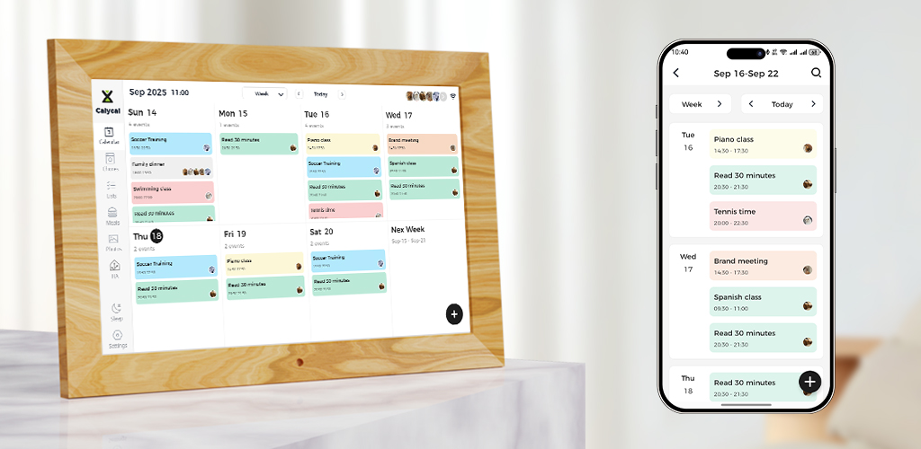 Calycal 电子日历相框是一款面向家庭与办公场景的实用数码产品,可将日程计划、家务分派、饮食计划与待办事项进行有序管理并及时提醒用户与家人,同时也支持作为高清电子相框使用。